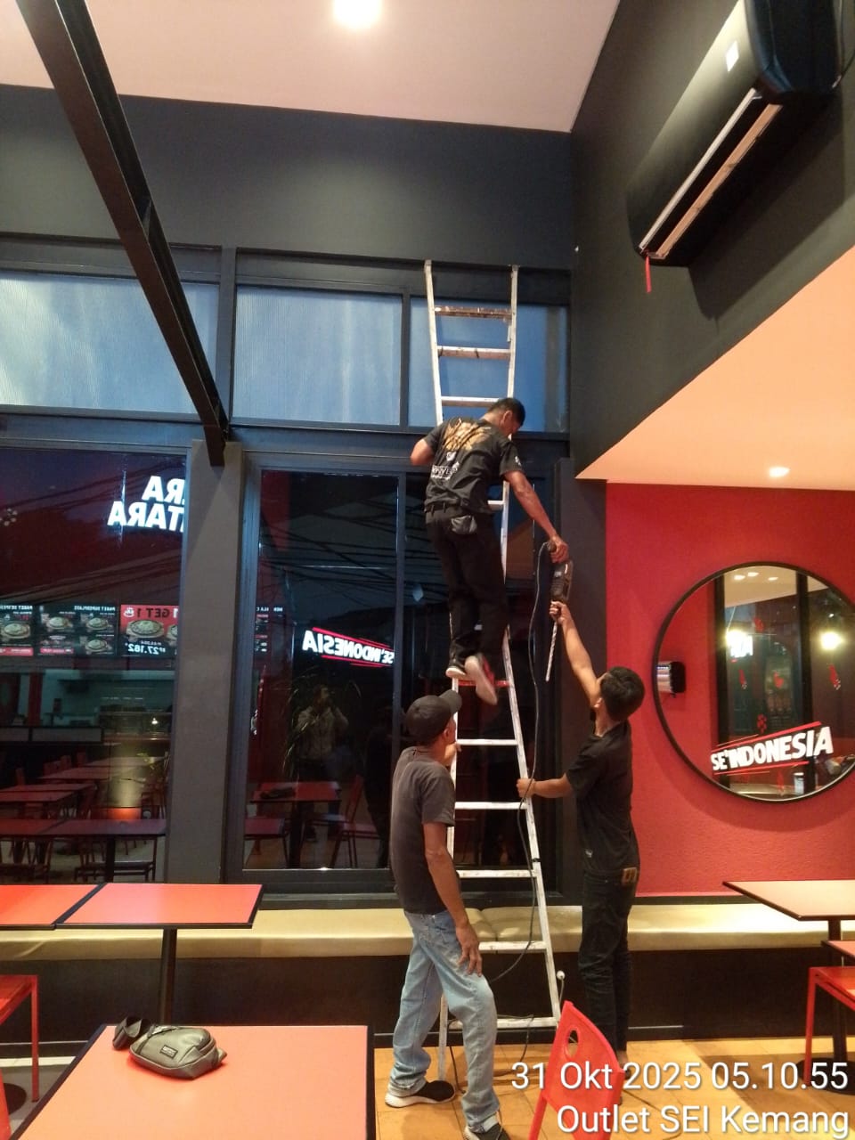 Pemasangan sistem keamanan CCTV terintegrasi pada cabang Kemang outlet Se’Indonesia. Pekerjaan meliputi instalasi jalur kabel, penentuan titik kamera strategis, hingga konfigurasi sistem untuk pemantauan terpusat.